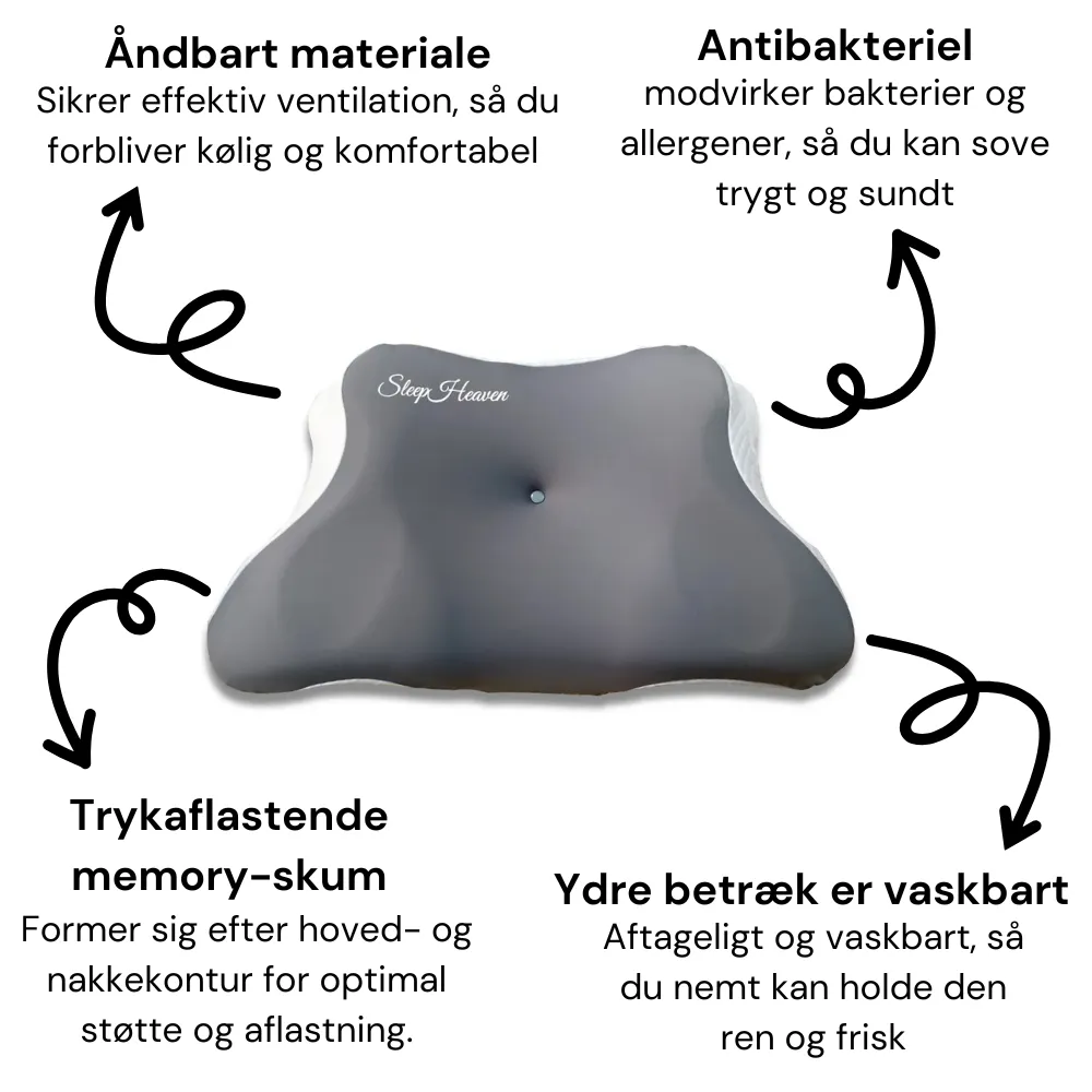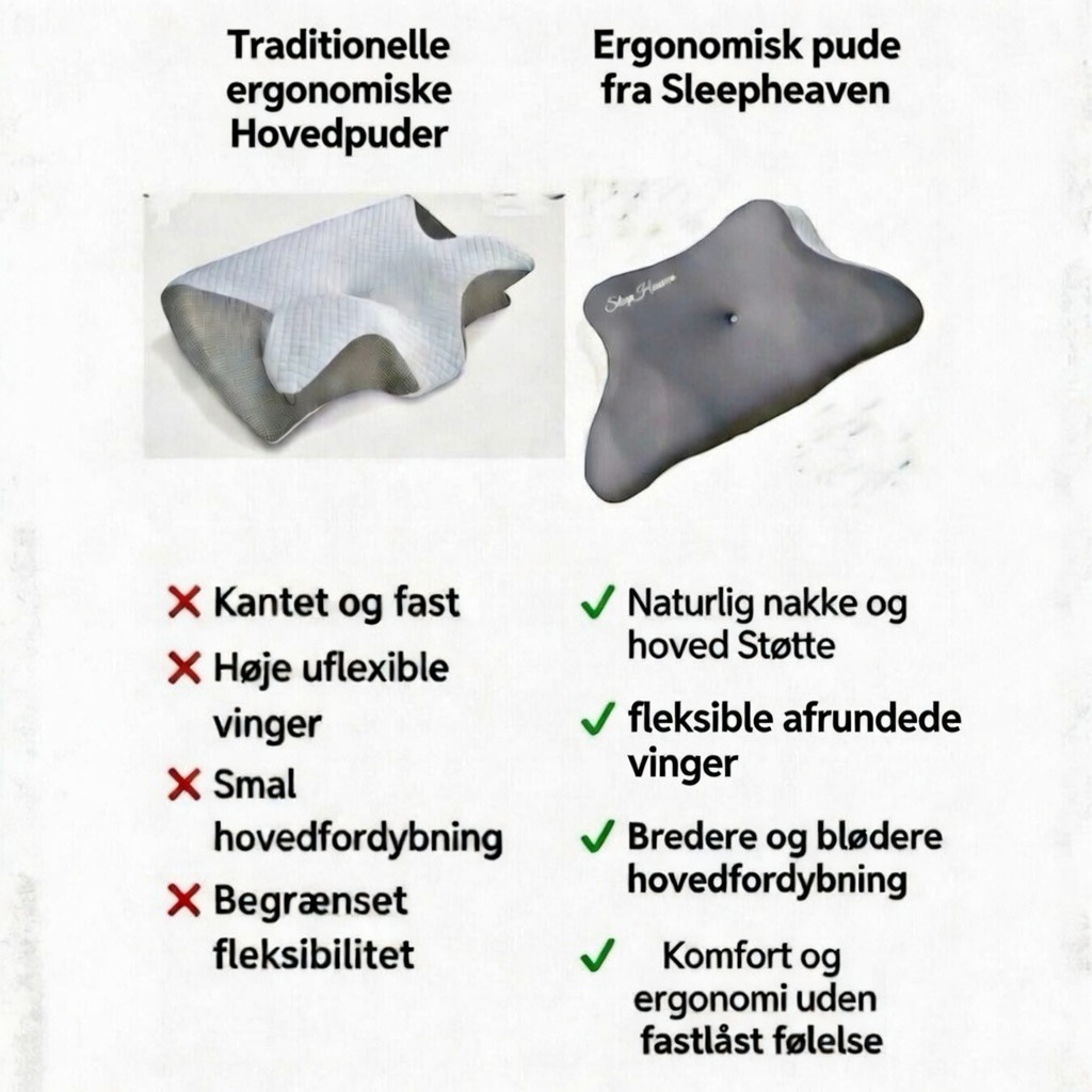 Mange ergonomiske butterflyformede hovedpuder føles for høje, for faste – og næsten låsende for nakken. Hos Sleepheaven har vi valgt en anden tilgang.